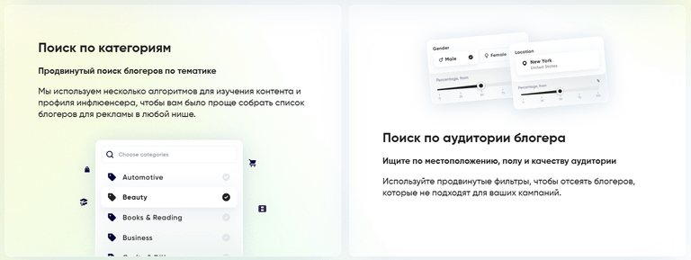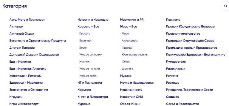 Максимальную эффективность даёт сочетание фильтров категорий (тематик блогеров) с базовыми настройками поиска. Одной категории недостаточно — важно учитывать и другие параметры, включая размер аудитории и ее вовлечённость.
